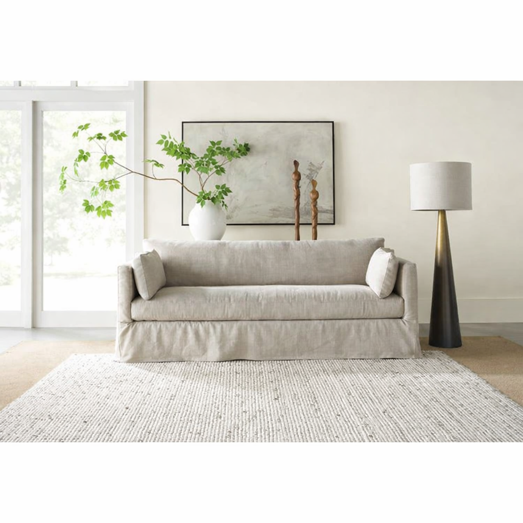 Elegance meets modern ease in our Julia Slipcover Sofa. The classic lines of this large sofa are softened by the soft finish and beautiful drape of a washed linen slipcover. Countess is a 100% linen fabric that highlights the variations in shade and thickness of the weave that represent the unique appeal of natural fibers.