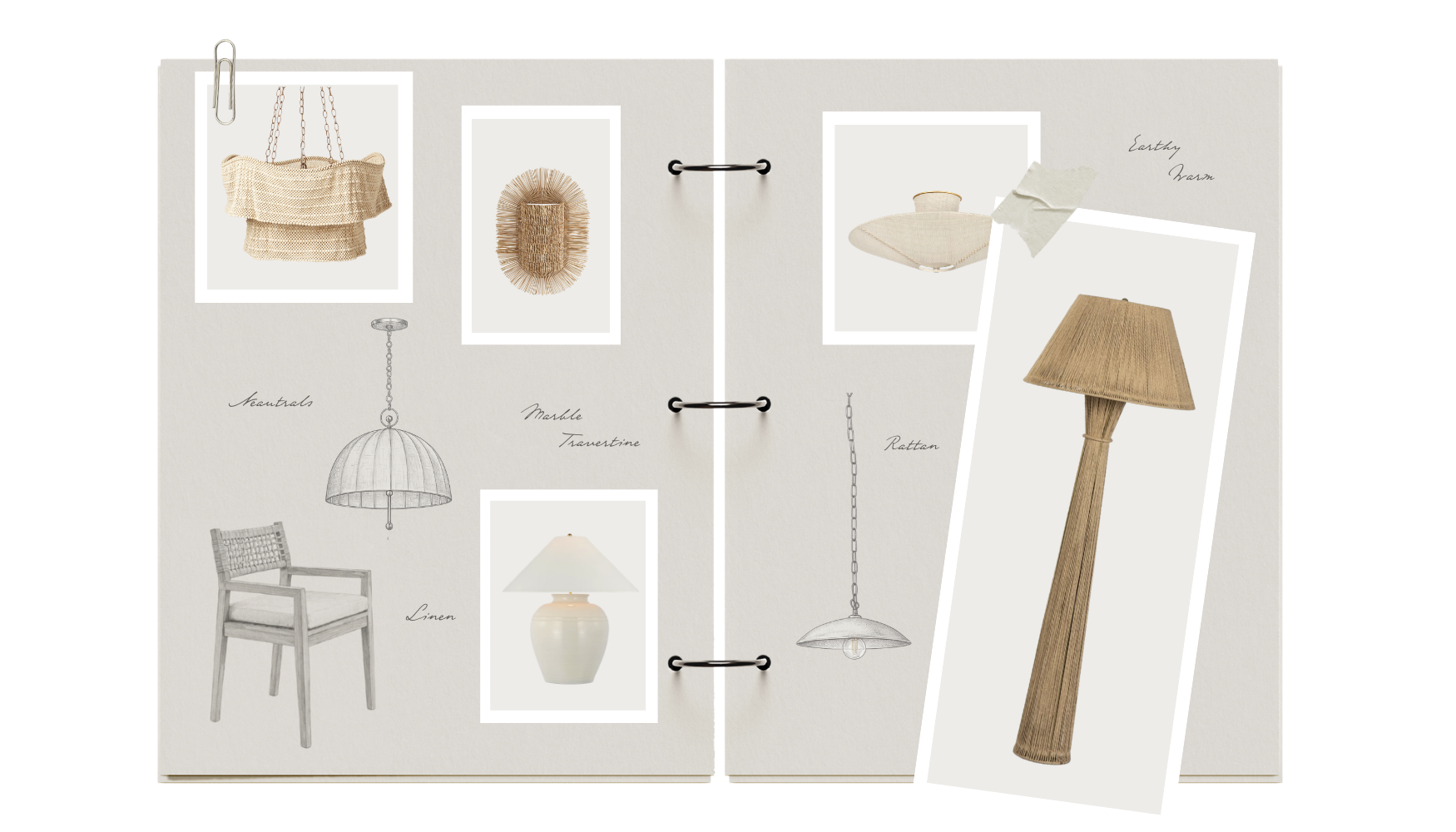 A calm, natural space inspired by texture and light. You love wood, linen, woven details, and soft coastal touches. Lighting feels warm and relaxed — nothing harsh or overly formal. If your home is your retreat and you lean toward earthy, easy finishes, this collection will feel right at home.