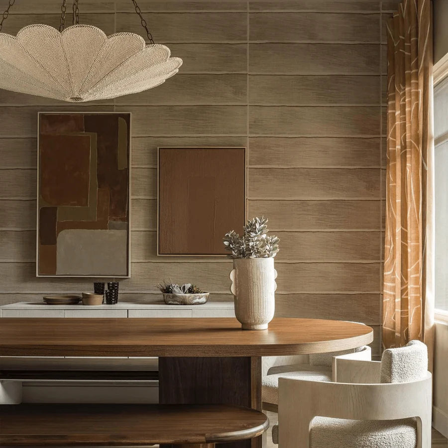 Palm-inspired chandelier with fresh vibe. Hand-strung woven coco beads create an organic, refined pattern.