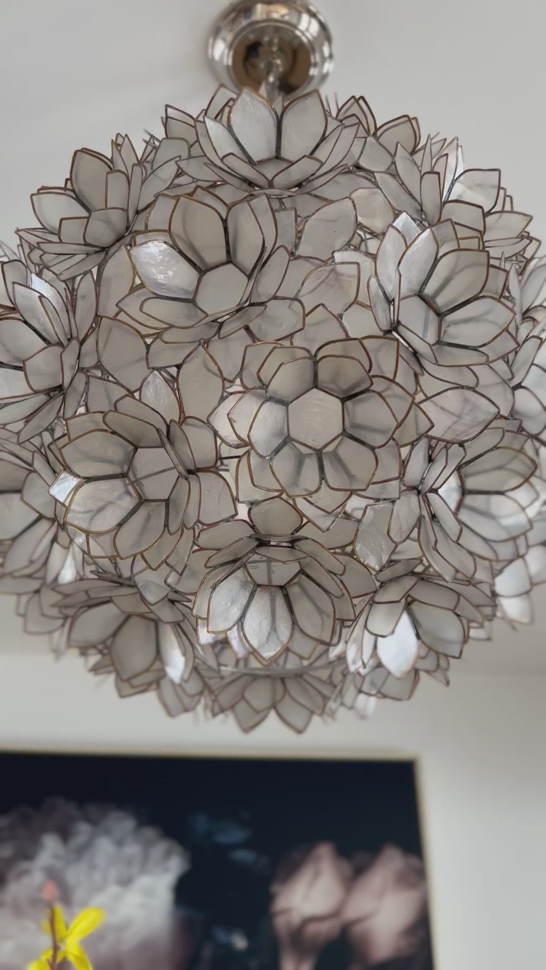 A brilliant fusion of light and art, the Lotus pendant is an absolute showstopper. Lotus flower motif features literally hundreds of translucent, pearl-toned capiz shell petals. Filipino artisans frame each delicate petal is within a nickel metal accent. It's soft, diffused light will bring radiant drama to your prime gathering space. A natural wonder!